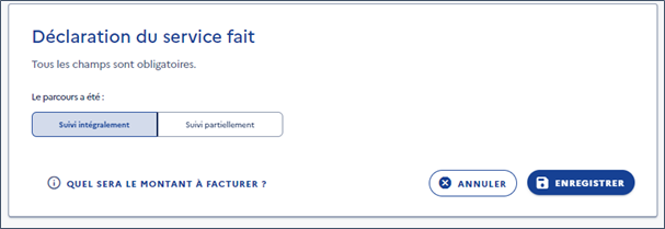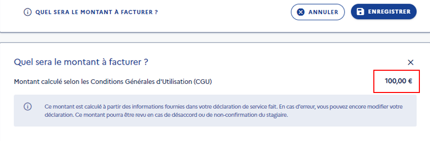 Voir le montant à facturer avant de valider le service fait permet à l’organisme de vérifier qu’il n’a pas fait d’erreur à la saisie de sa déclaration de service fait. En cas d’incohérence, il pourra annuler sa saisie et déclarer à nouveau le service fait.