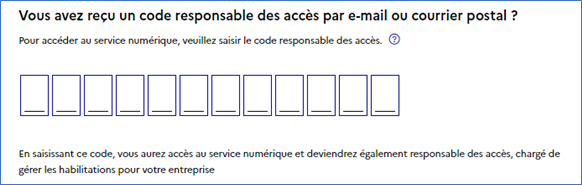 4. Si vous avez reçu un code responsable des accès, renseignez-le;Vous deviendrez également responsable des accès à EDOF pour votre entreprise.